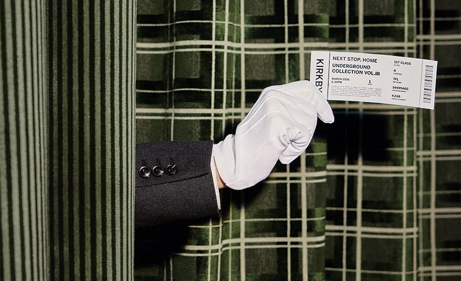 The third collaboration between Kirkby and Transport for London (TfL), UNDERGROUND VOL.III is a distinct collection of upholstery velvets derived from original, iconic designs historically used across the TfL network. Kirkby have reinterpreted and recoloured eight archive designs that were used across London Transport lines from the 1910s to present day.